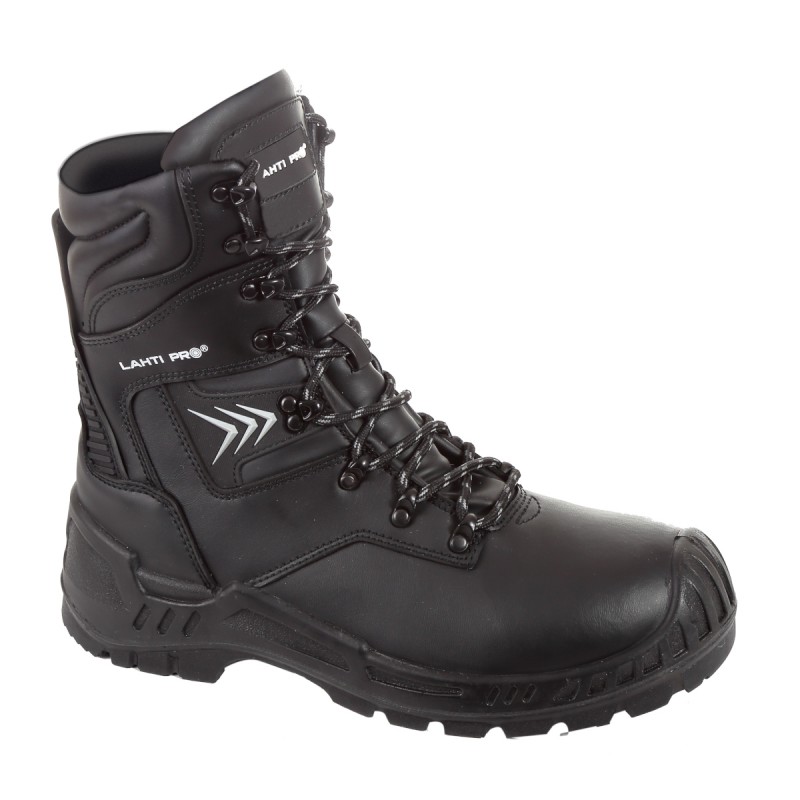 • Material: Partea superioară: piele. Ocheți metalici de calitate superioară pentru șireturi. Partea din față și spate întărită cu sistem TPR. Căptușeală: material textil. Branț: detașabil. Talpă: poliuretan cu dublă densitate cu proprietăți anti-alunecare (pe suprafețe din oțel și ceramică), rezistență la uleiuri și hidrocarburi, laterale înalte de protecție pentru o stabilitate ridicată.