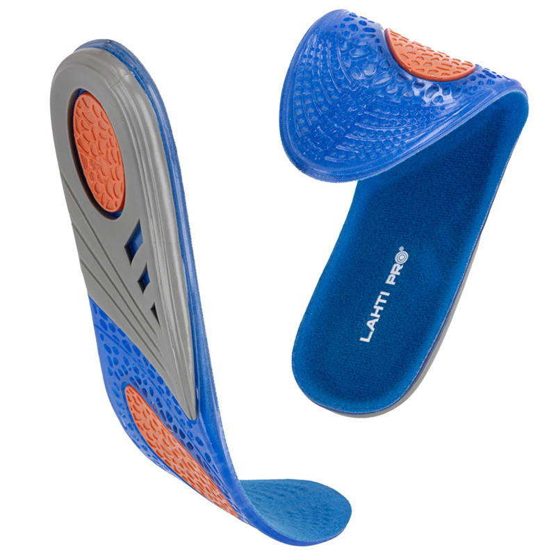 • Fabricat din gel cu densitate variabilă, care absoarbe presiunea în diverse zone a tălpii. Designul branțurilor reduce oboseala picioarelor și mărește confortul în timpul mersului. Datorită unor perforații și a unui strat de material special, asigură circulația aerului în interiorul încălțămintei. Designul branțurilor reduce oboseala și crește confortul în timpul mersului pe jos. Partea superioară este confecționată din mesh 3D elastic ce oferă confort și aerisire sporită. Mărime ajustabilă. Perfect pentru persoanele care duc un stil de viață activ sau lucrează în picioare.