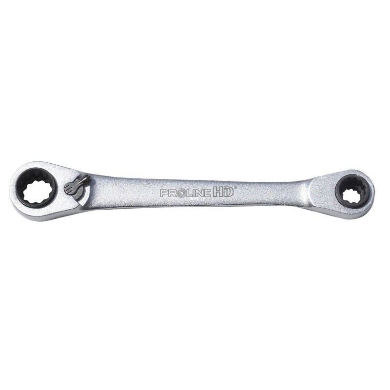 • Patru dimensiuni într-o singură cheie cu un mecanism cu clichet reversibil cu un comutator