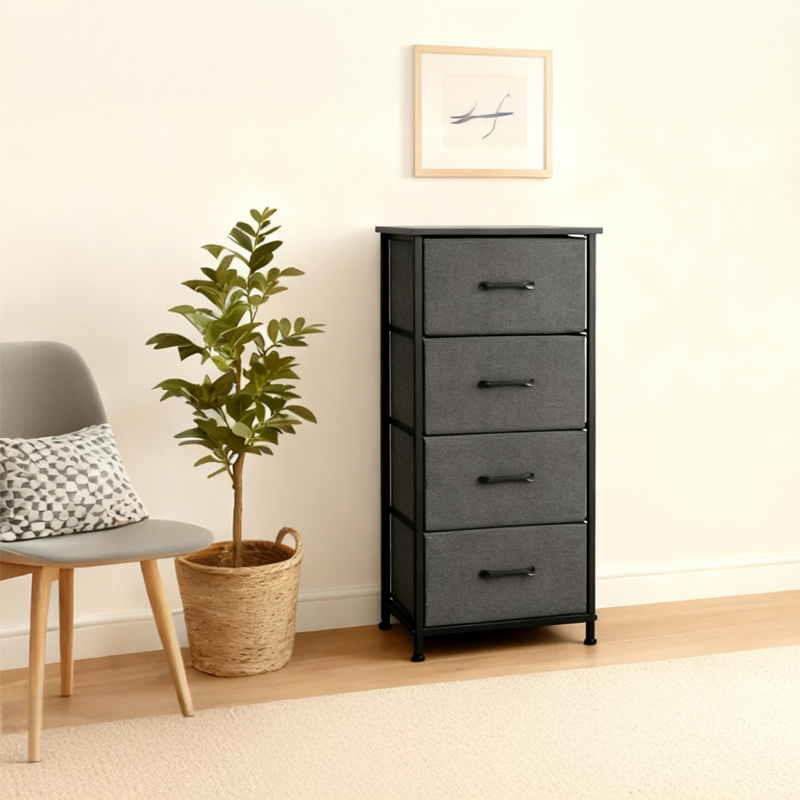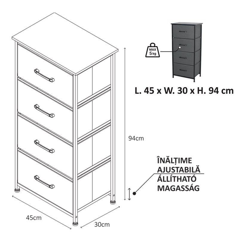 comoda 4 sertare textile / 45x30x94cm - antracit/negru