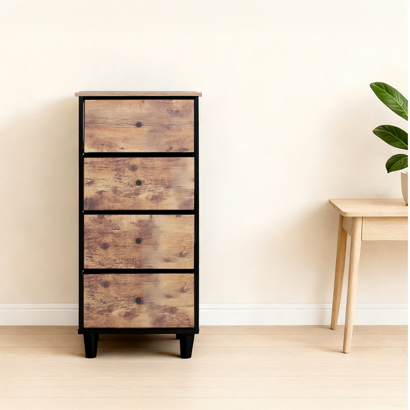 comoda 4 sertare textile / 45x30x94cm - vintage/negru