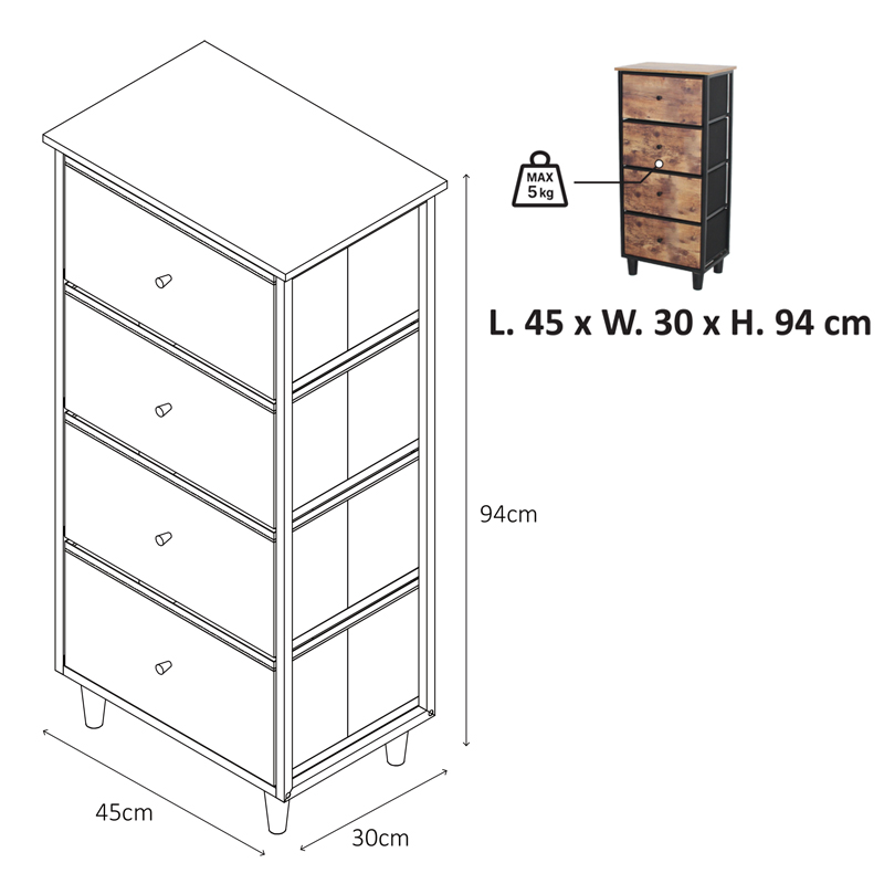 COMODĂ TEXTILĂ CU 4 SERTARE