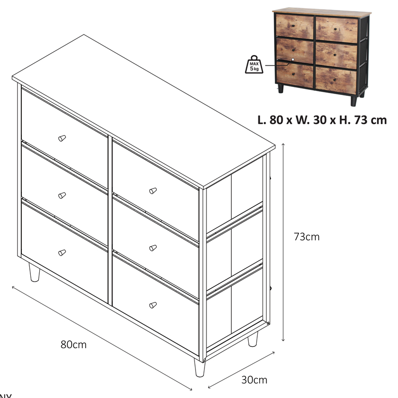 COMODA 6 SERTARE TEXTILE / 80X30X73CM - VINTAGE/NEGRU