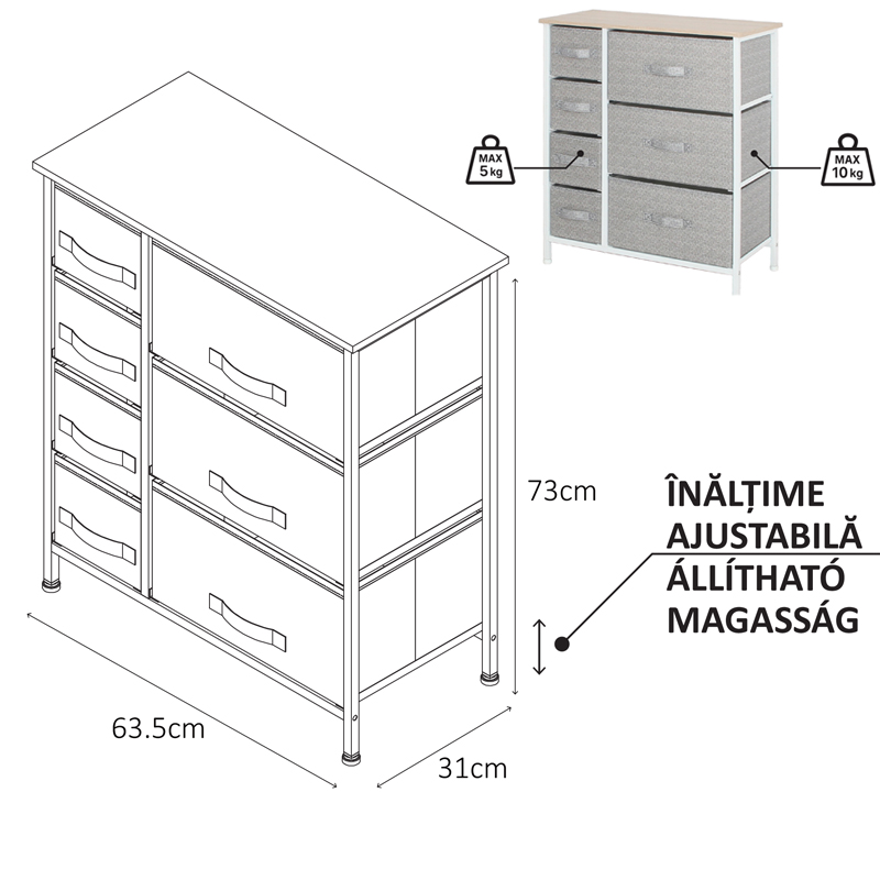 comoda 7 sertare textile / 63x31x73cm - gri/alb