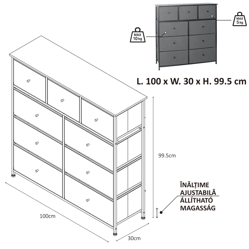 COMODA 9 SERTARE TEXTILE / 100X30X99CM - ANTRACIT/NEGRU