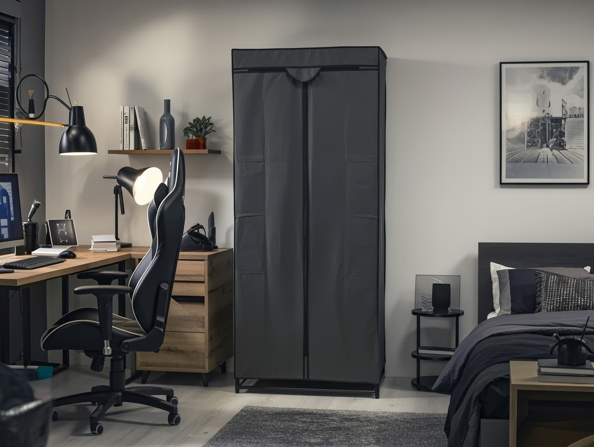 DULAP HAINE TEXTIL CU FERMOAR - 70X45X160CM / GRI