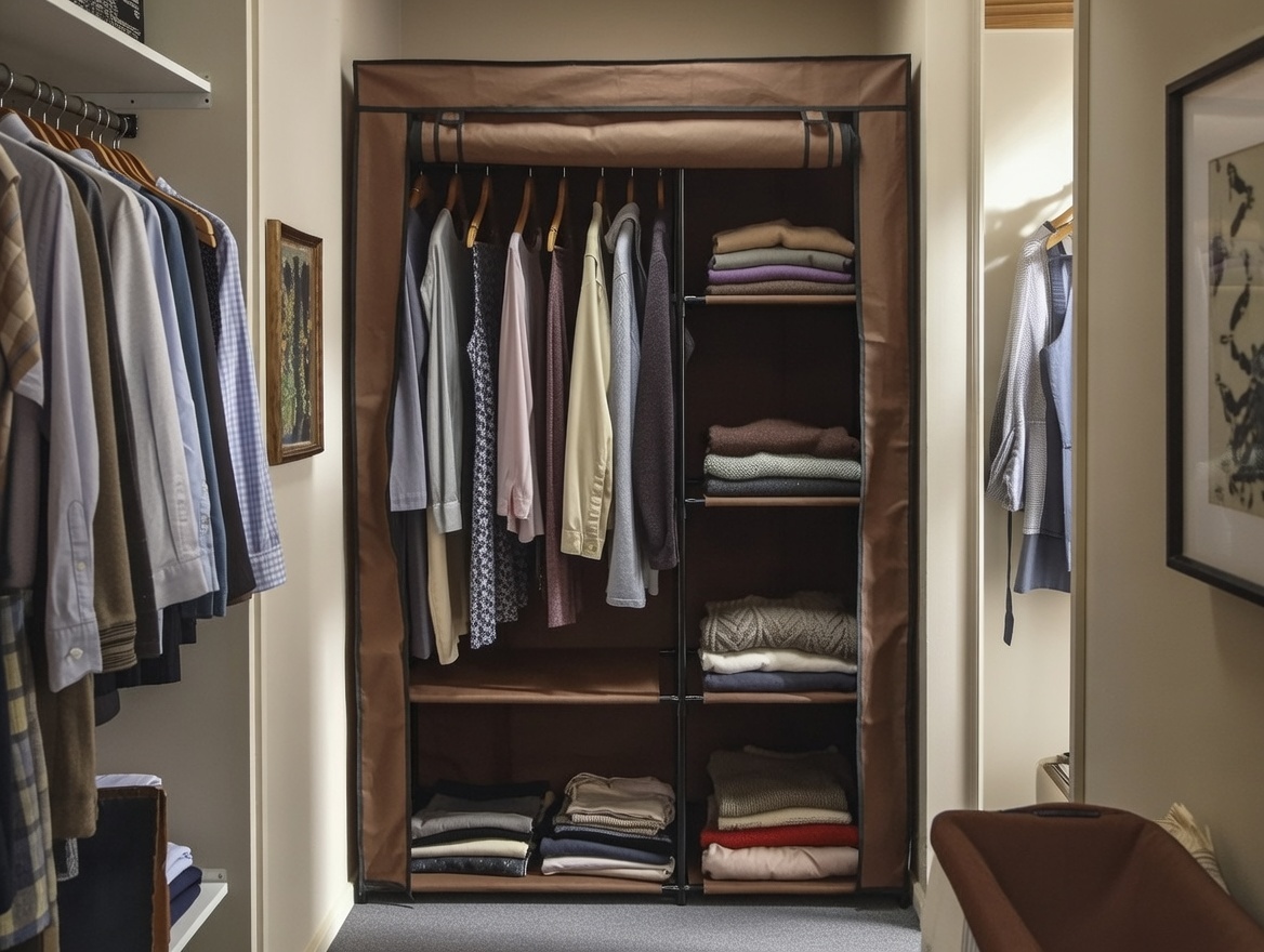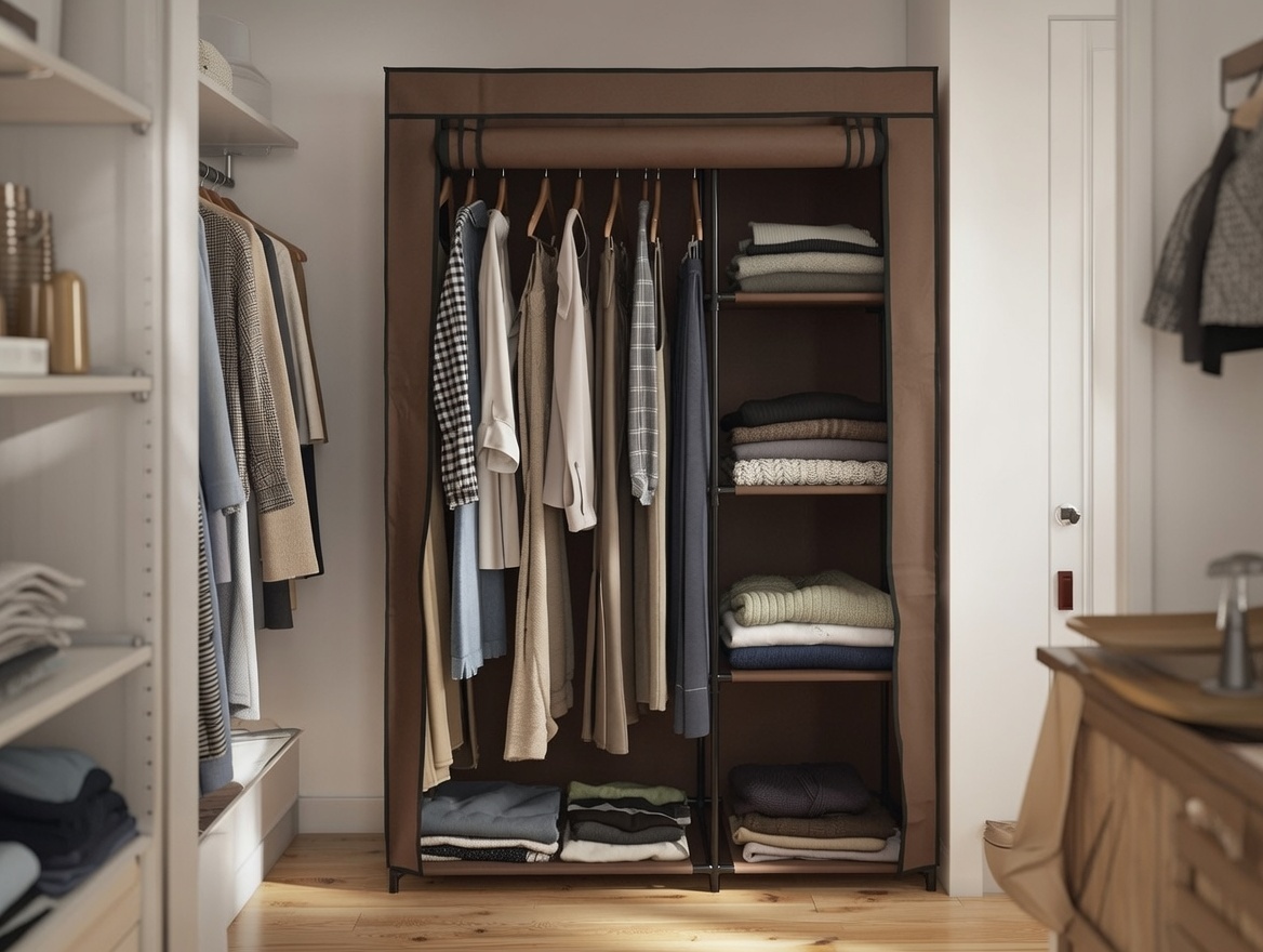 dulap haine textil cu rulou - 105x45x160cm / maro