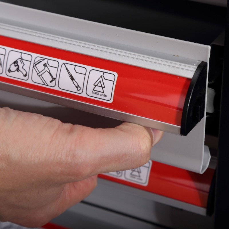 • Pereți confecționați din tablă de oțel cu o grosime de 0,8 mm. Șapte sertare versatile care vă permit să stocați într-o manieră ordonată uneltele și accesoriile necesare.