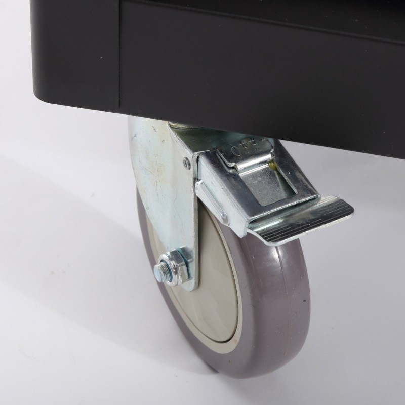 • Roți cu rulmenți care permit mișcarea dulapului fără probleme chiar și în codiții de maximă încărcare. Sistemul de blocare a roților elimină posibilitatea de mișcare nedorită a dulapului, permițându-i să se imobilizeze.