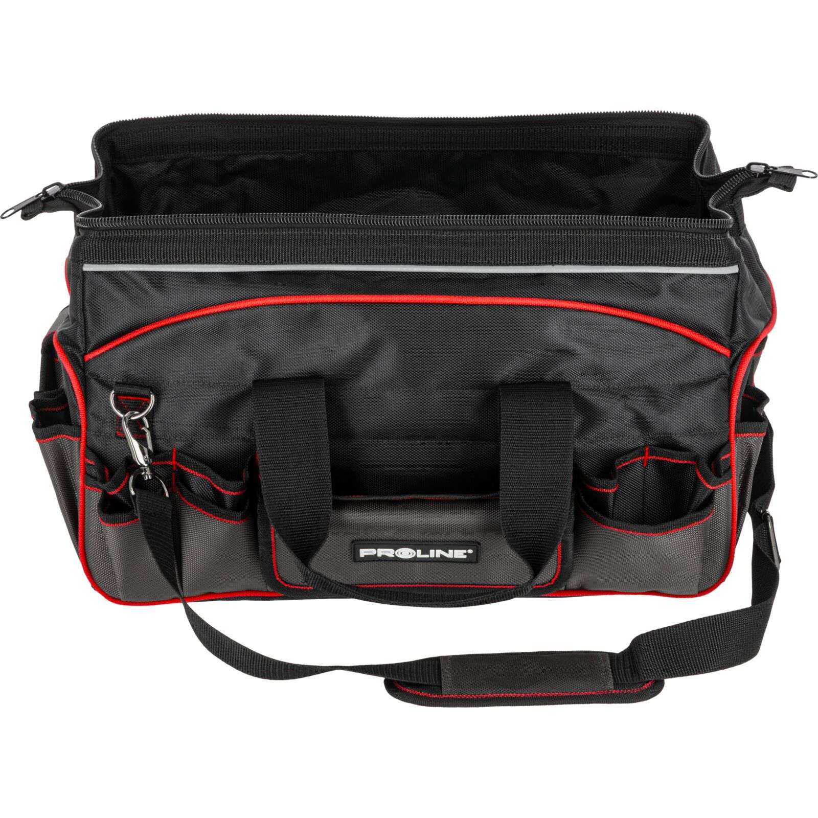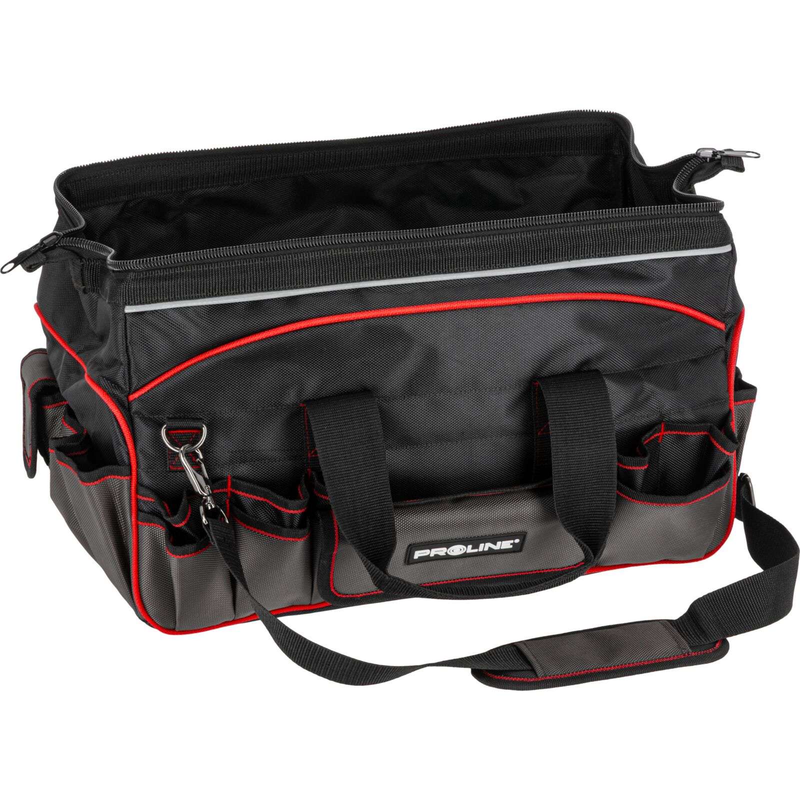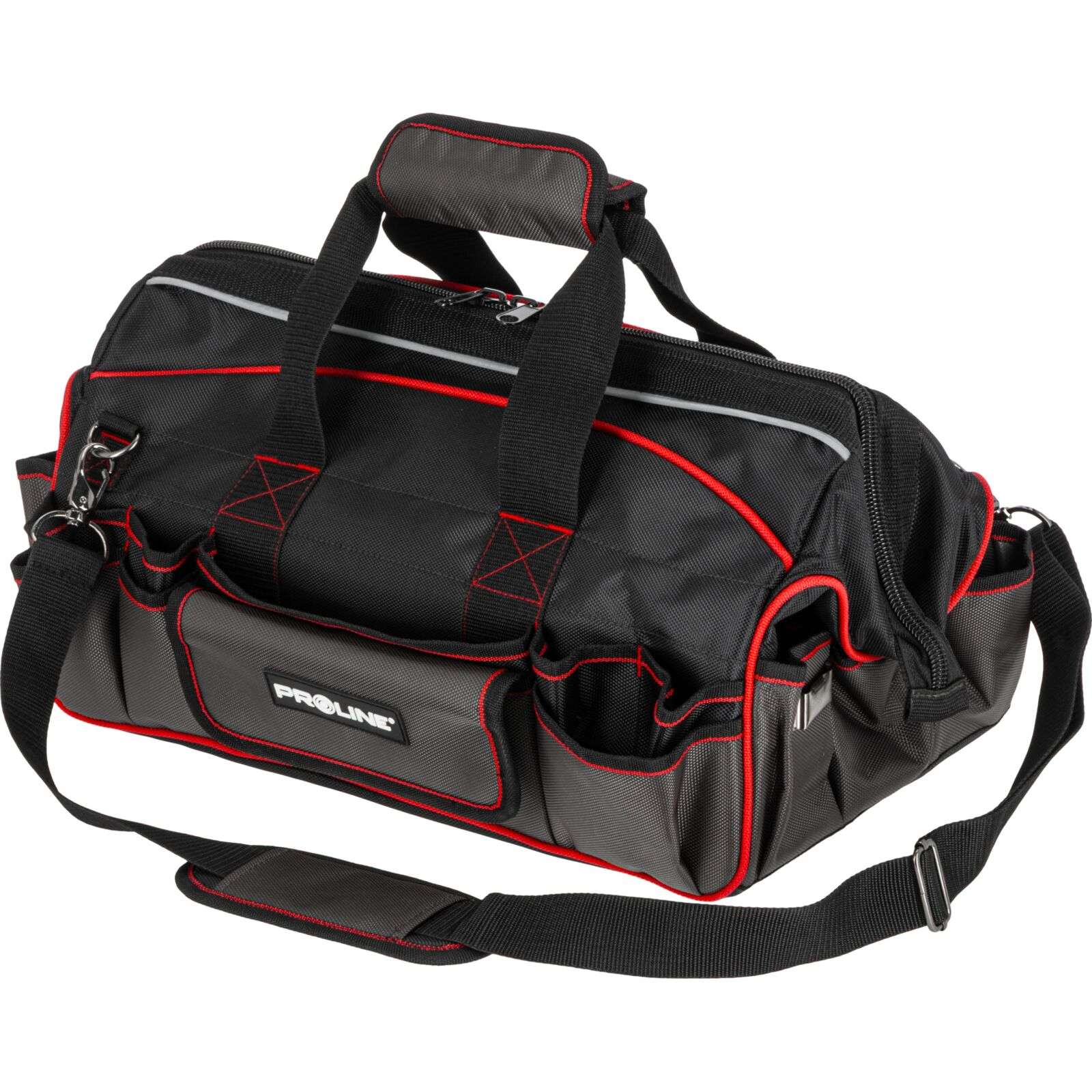 DescriereGeanta de scule monterska Proline 62157, 460 × 270 × 280 mm Geanta de scule practică și rezistentă Proline 62157 este soluția ideală pentru profesioniști și pasionați de bricolaj care apreciază ordinea și confortul în timpul lucrului. Realizată din poliester Oxford 1680D rezistent la uzură, garantează durabilitate chiar și în condiții dificile. Principalele caracteristici: • Material: poliester Oxford 1680D extrem de durabil Produse similare