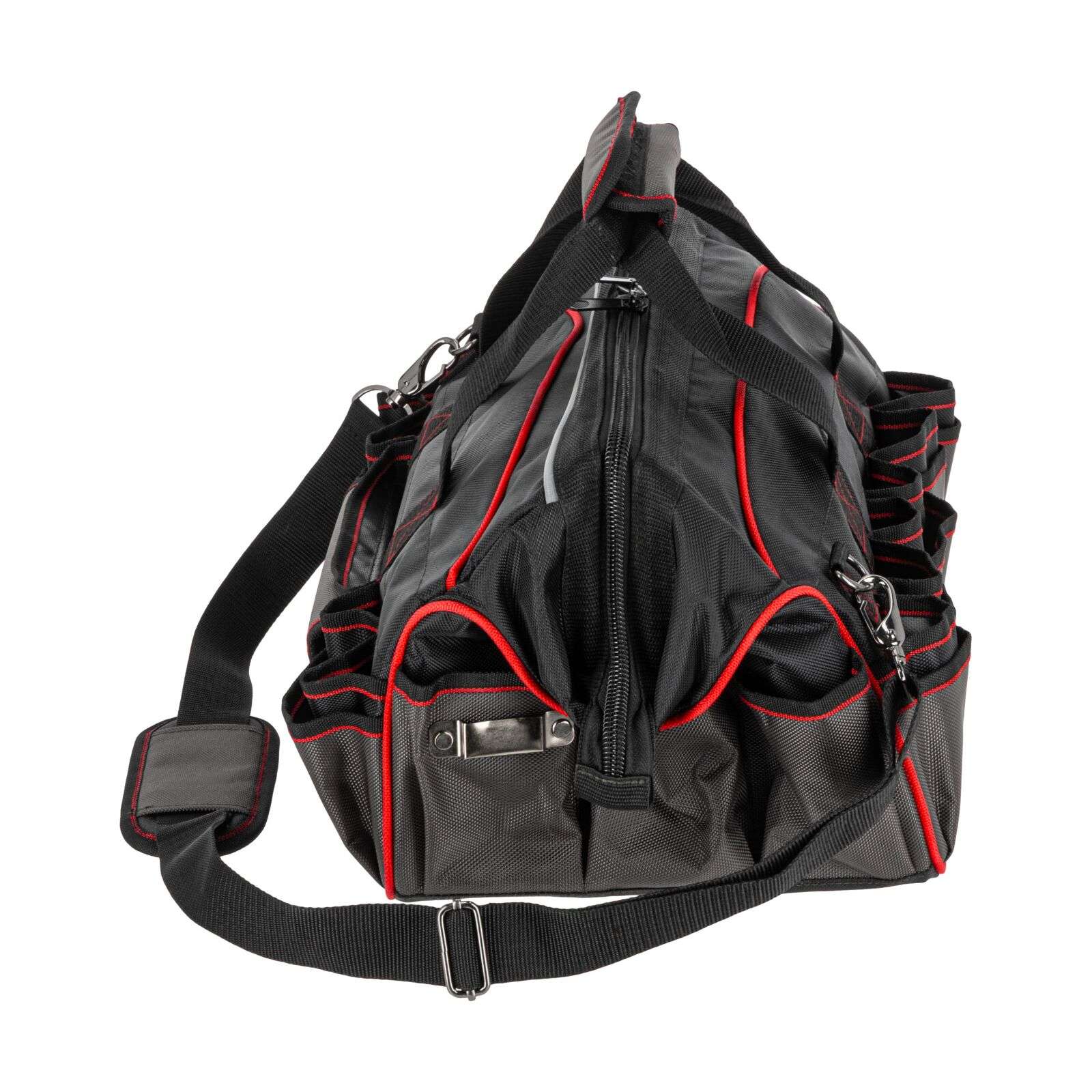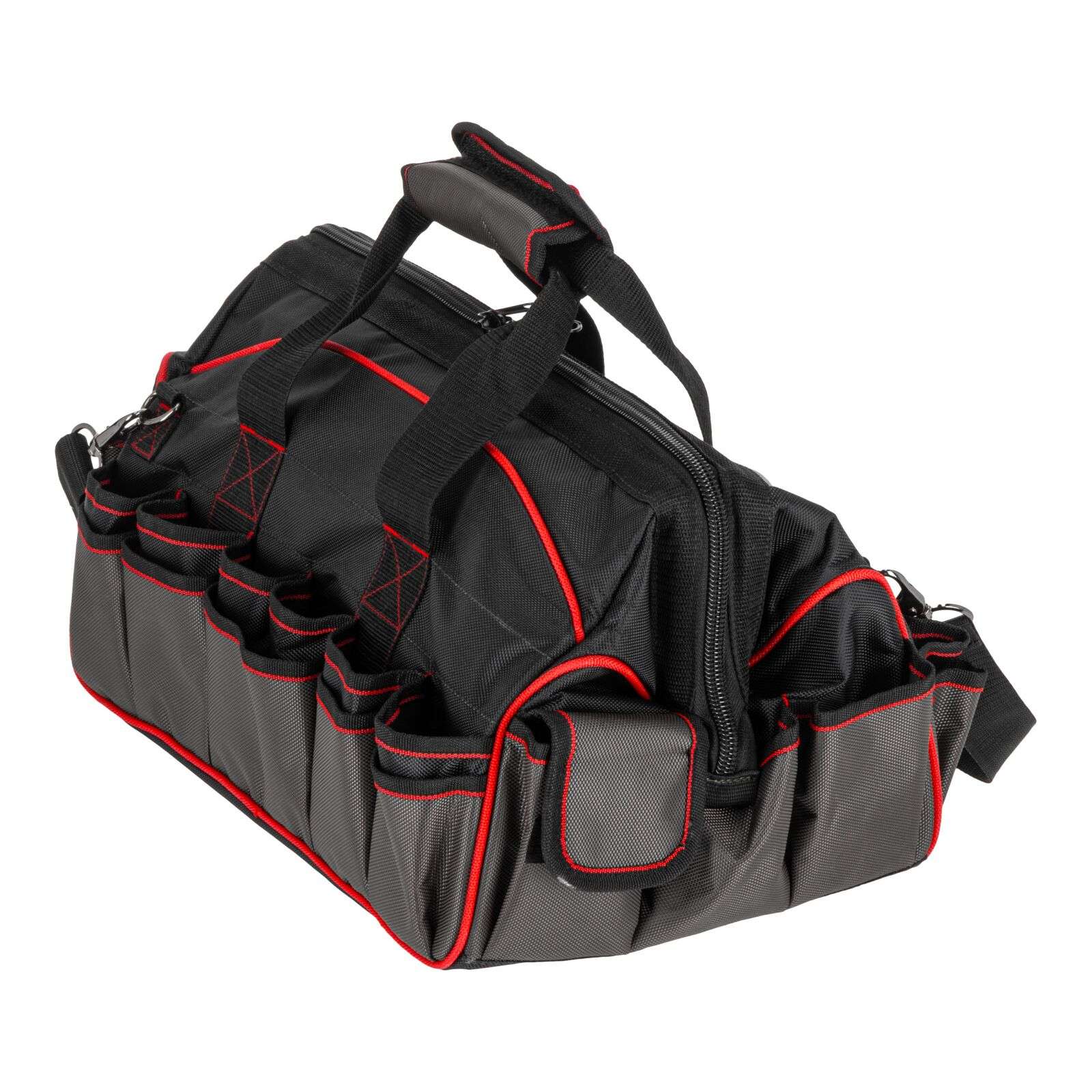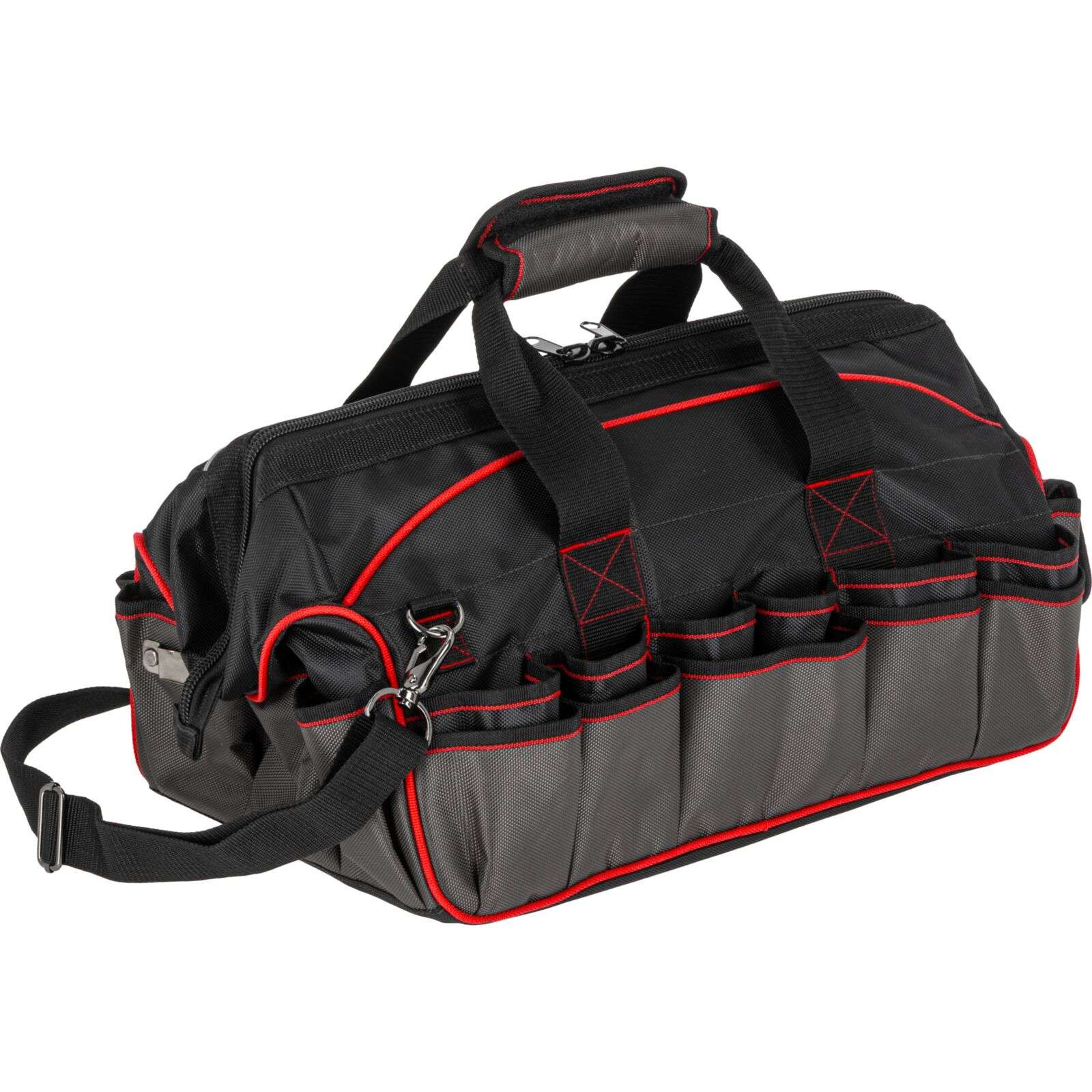 DescriereGeanta de scule monterska Proline 62157, 460 × 270 × 280 mm Geanta de scule practică și rezistentă Proline 62157 este soluția ideală pentru profesioniști și pasionați de bricolaj care apreciază ordinea și confortul în timpul lucrului. Realizată din poliester Oxford 1680D rezistent la uzură, garantează durabilitate chiar și în condiții dificile. Principalele caracteristici: • Material: poliester Oxford 1680D extrem de durabil Produse similare