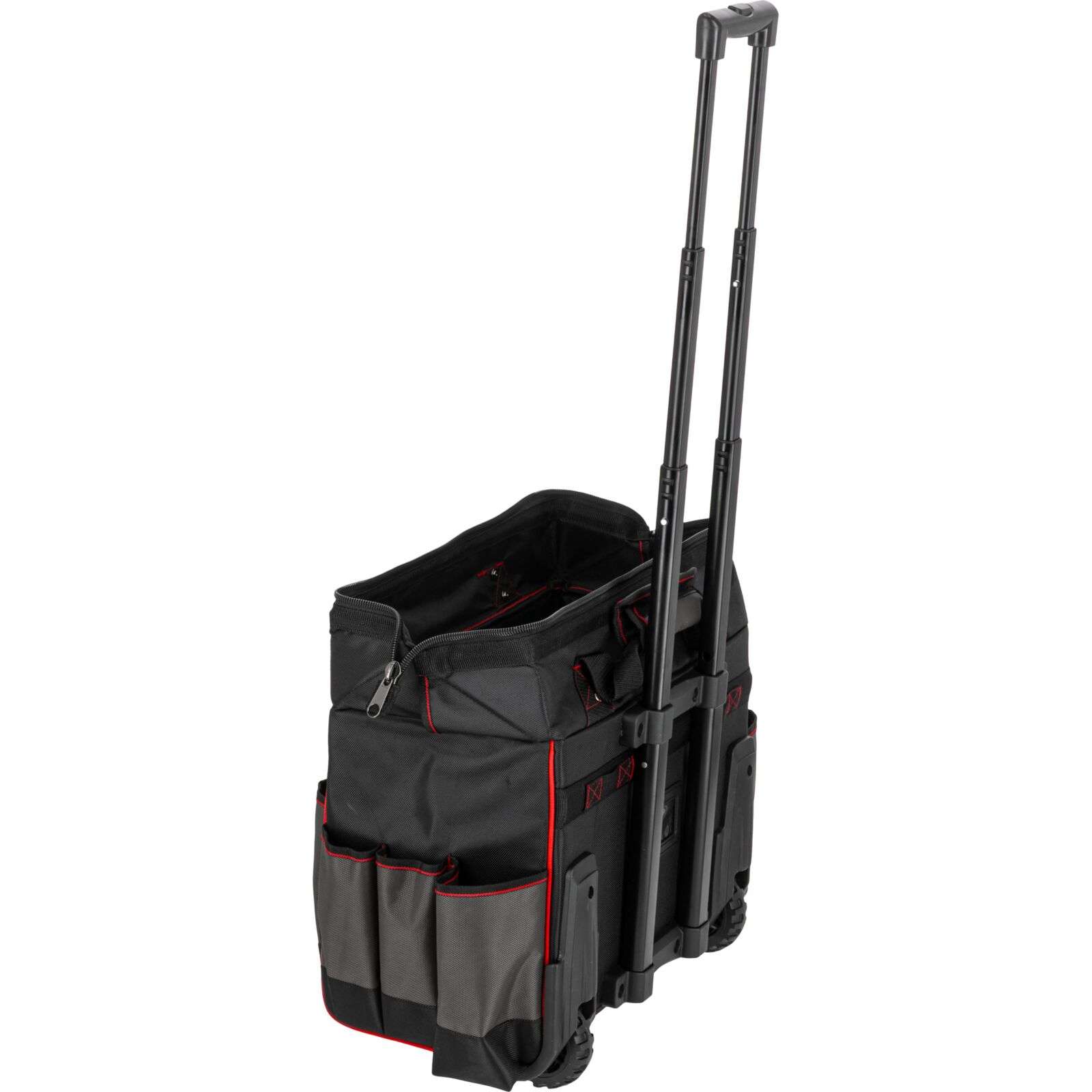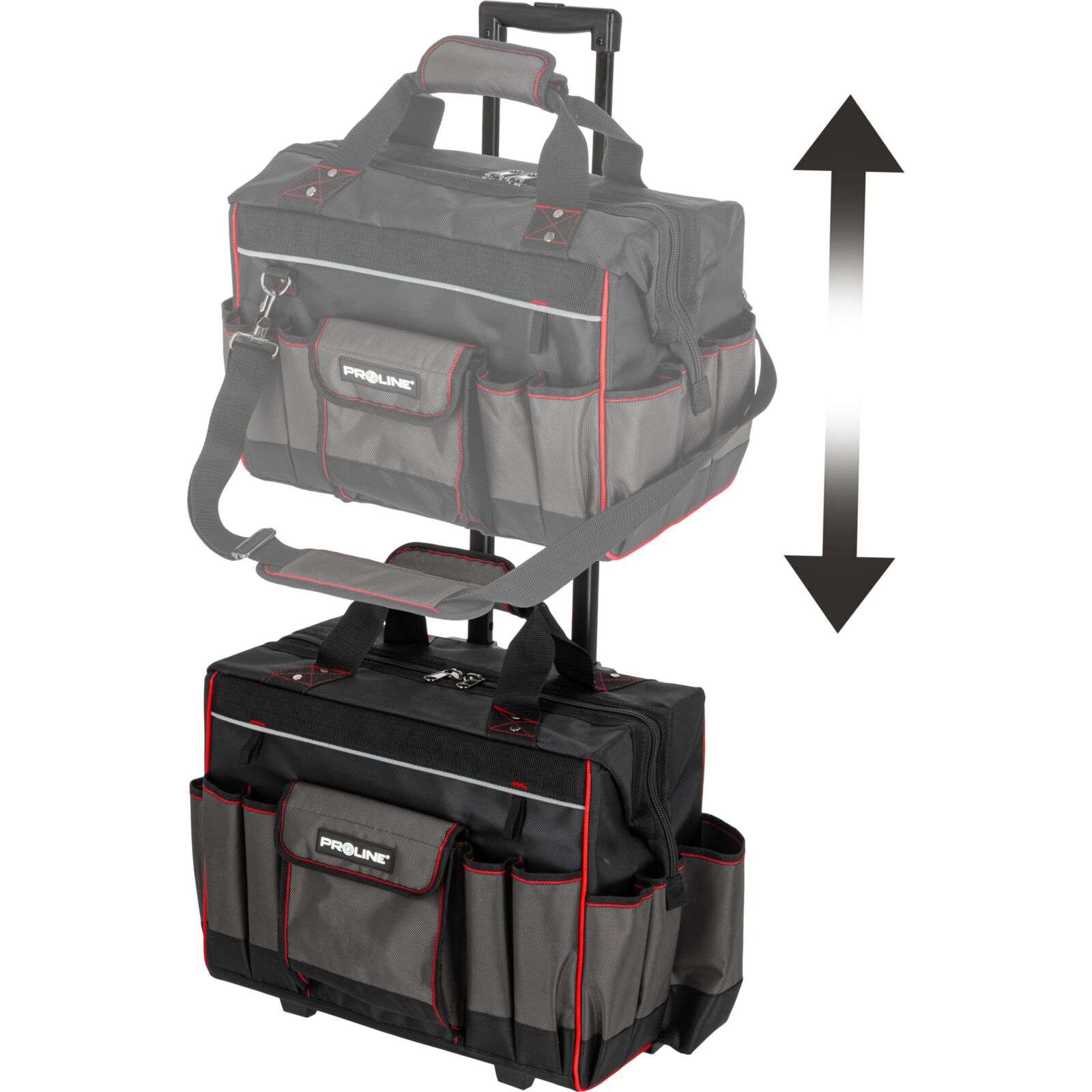 DescriereGeanta de scule pe roți Proline 62152, dimensiuni 440 × 240 × 420 mm, reprezintă o soluție solidă și funcțională pentru profesioniștii care apreciază ordinea, mobilitatea și durabilitatea în activitatea zilnică. Se potrivește perfect pentru montori, tehnicieni de service și specialiști care lucrează în teren. Fabricată din poliester Oxford 1680D rezistent, geanta oferă o rezistență ridicată la abraziune și la utilizare intensivă. Sistemul bine gândit de buzunare permite organizarea comodă a sculelor și accesoriilor, asigurând acces rapid la cele mai necesare elemente. Datorită mânerului telescopic și roților, transportul chiar și al echipamentului greu devine ușor și confortabil. Mânerul de purtare este întărit prin nituri pentru o durabilitate sporită și este prevăzut cu o mâner moale închisă cu velcro, ceea ce crește confortul la utilizare. Principalele caracteristici ale produsului: • Dimensiuni: 440×240×420 mm Produse similare