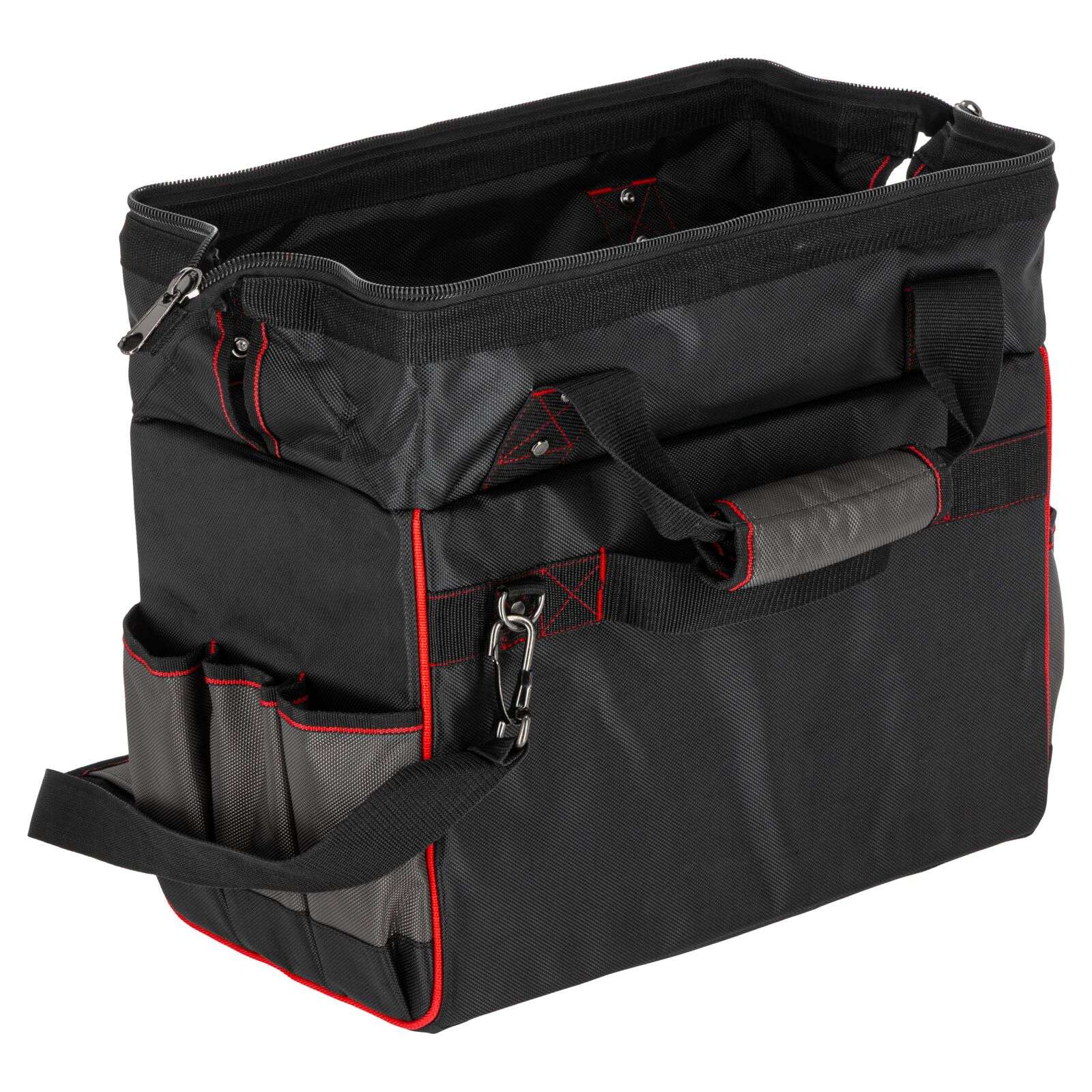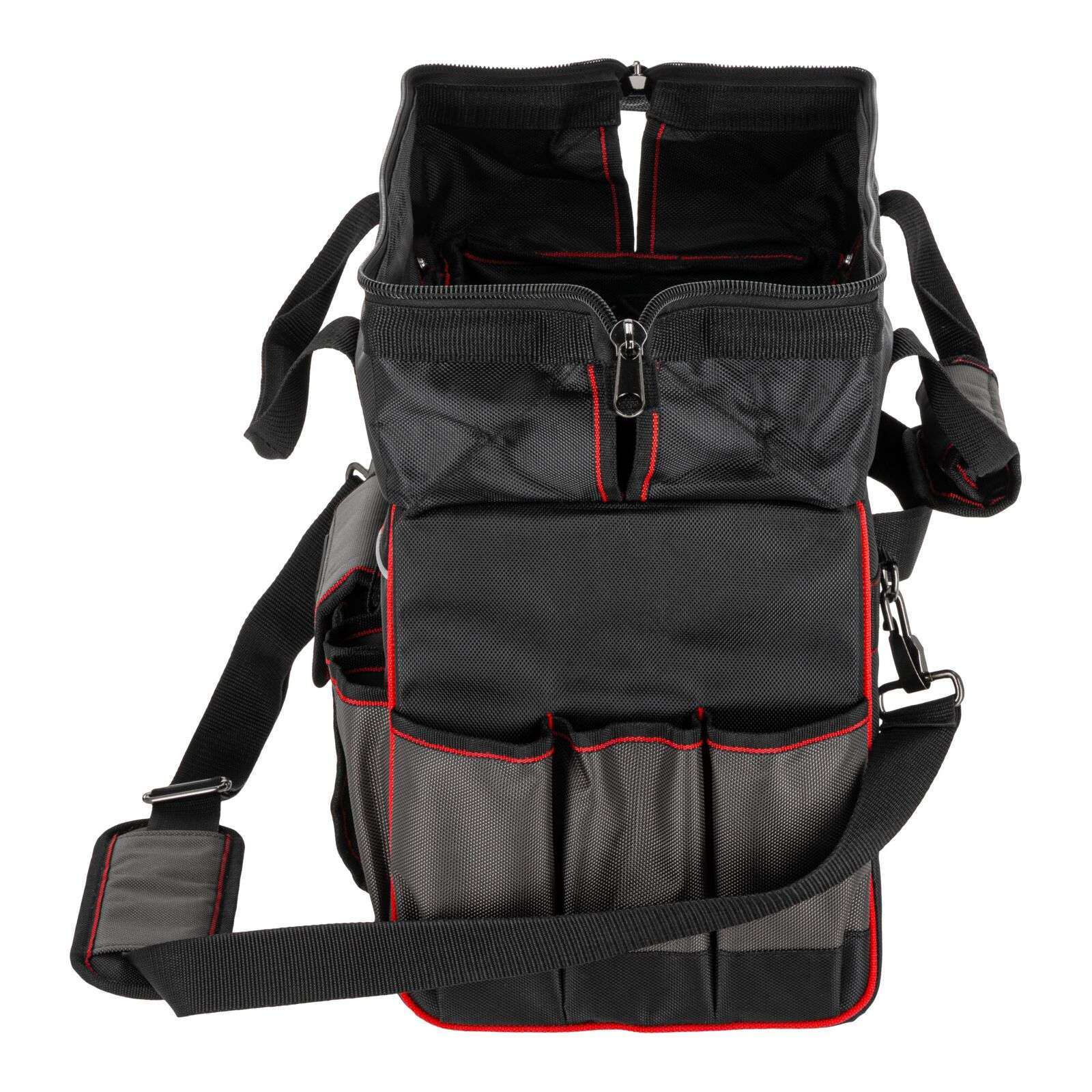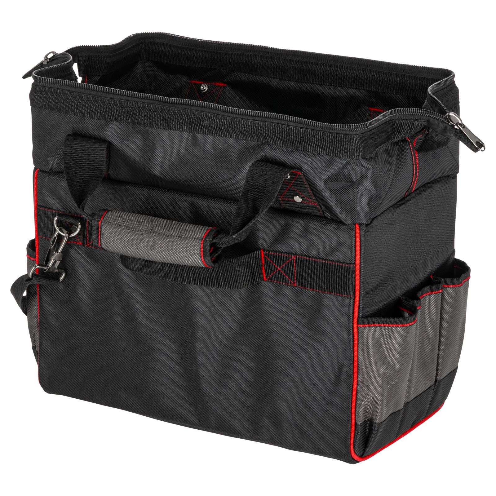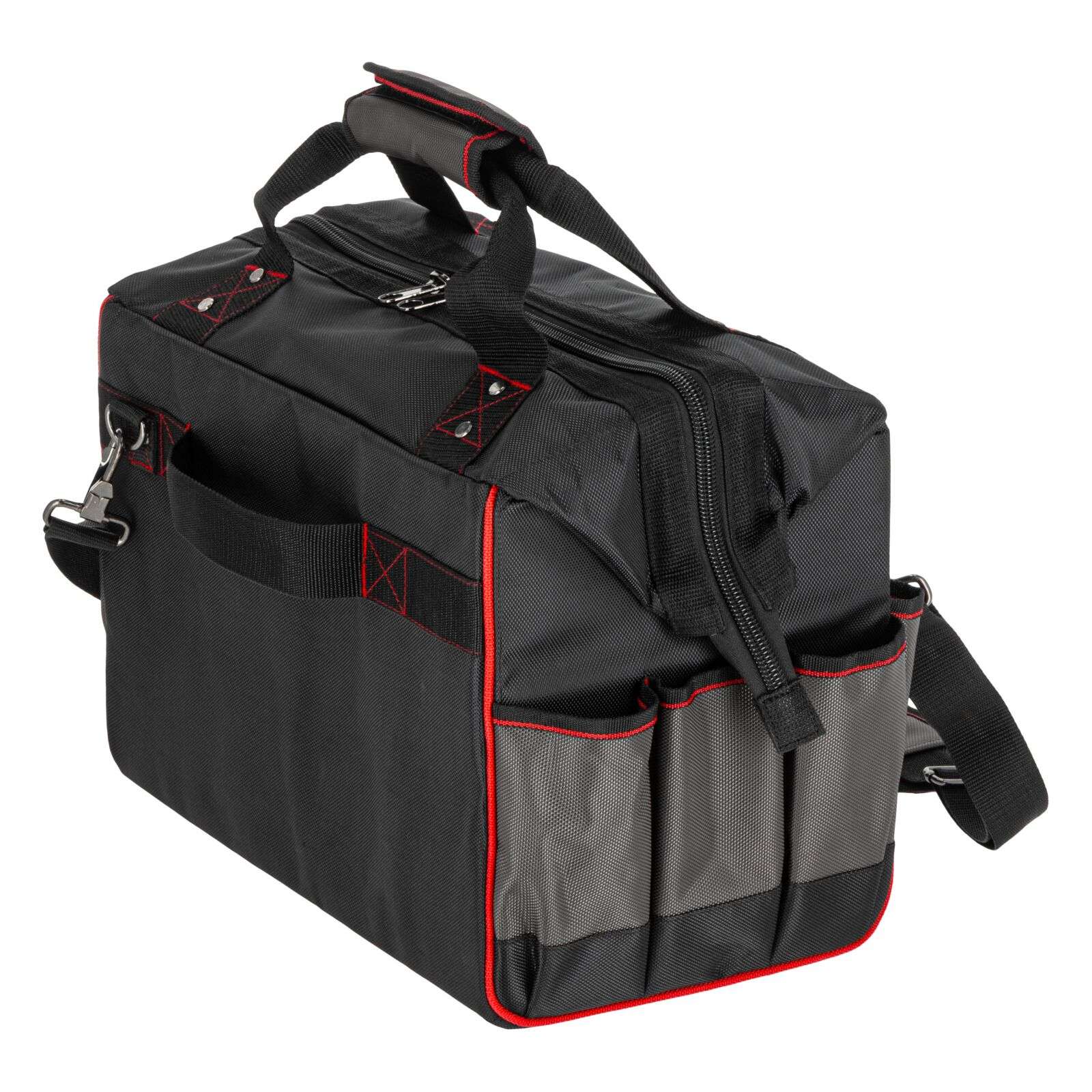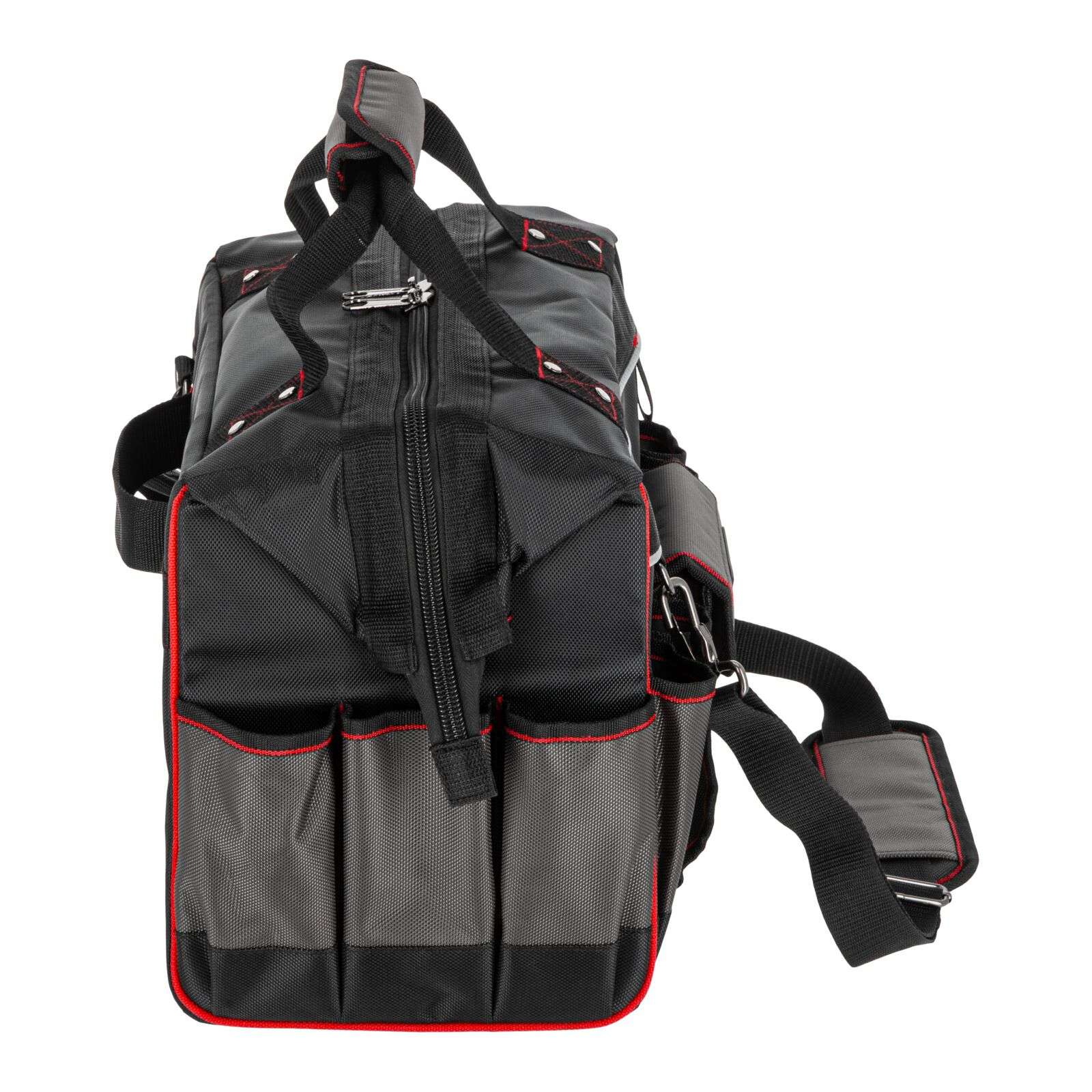 DescriereGeanta de scule Proline 62153 reprezintă o soluție practică și rezistentă, concepută special pentru profesioniștii care au nevoie de o organizare fiabilă a uneltelor și de confort în timpul transportului. Se potrivește excelent pentru montori, instalatori, tehnicieni de service sau specialiști în teren. Geanta este fabricată din poliester Oxford 1680D rezistent la deteriorări, ceea ce garantează o durată lungă de viață chiar și la utilizare intensivă. Construcția rigidizată protejează conținutul și facilitează menținerea ordinii în interior, iar numeroasele buzunare permit aranjarea comodă a uneltelor și accesoriilor. Mânerul întărit cu nituri și mânerul moale închis cu velcro asigură un transport confortabil. În plus, geanta este echipată cu un bretea reglabilă și detașabilă pentru umăr, care crește confortul la transport pe distanțe mai lungi. Fermuarul dublu permite acces rapid și ușor la conținut, iar elementele reflectorizante îmbunătățesc siguranța la lucru. Principalele caracteristici ale produsului: • Material: Poliester Oxford 1680D Produse similare
