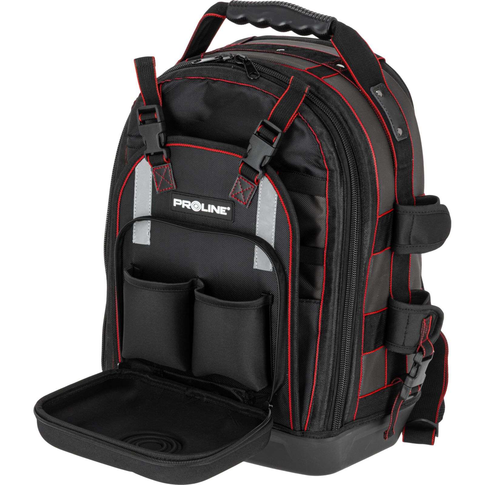 Geanta Proline 62158 a fost conceput special pentru profesioniști și pasionați de bricolaj care au nevoie de o metodă practică și confortabilă de depozitare a uneltelor. Realizat din poliester Oxford 1680D rezistent, plecacul garantează durabilitate chiar și în condiții de lucru dificile.