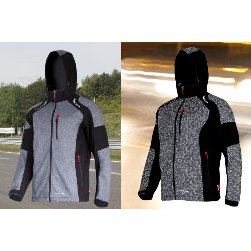 • Material special triplu stratificat cu membrană din poliuretan termoplastic (TPU), impermeabil (8000 mm), permeabil aer (3000 g/m2/24 h), ce asigură un confort ridicat. Material cu o imprimare reflectorizantă care crește vizibilitatea în întuneric. 5 buzunare (3 în exterior cu închidere prin fermoar și 2 în interior). Glugă detașabilă reglabilă cu șnur de strângere ce oferă protecție împotriva frigului și a vântului Fermoar acoperit. Manșete ajustabile cu fixare prin arici. Talie ajustabilă.