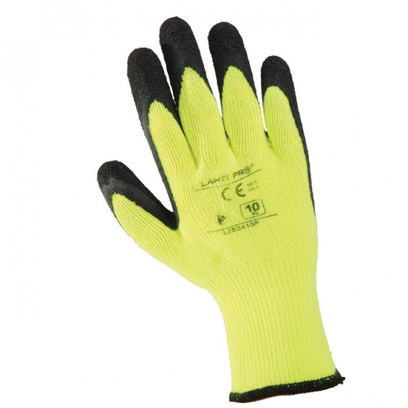 • Înveliş din latex pe porţiunea palmei şi a degetelor cu o structură poroasă pentru asigurarea unei rezistenţe ridicate la abraziune şi a unei aderenţe accentuate. Oferă protecţie termică şi asigură un confort ridicat. Versiune lungă cu manșete elastice. Utilizări diverse în ateliere, depozite, construcții, transporturi etc.