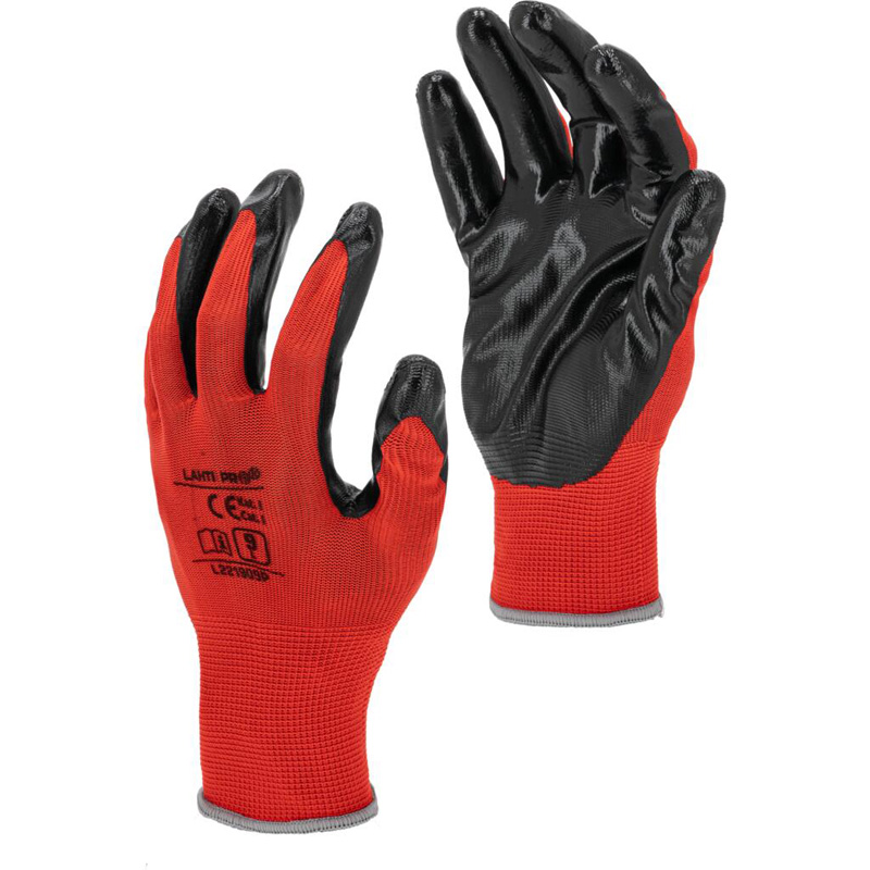 manusa nitril cu poliester / negru-rosu - 11