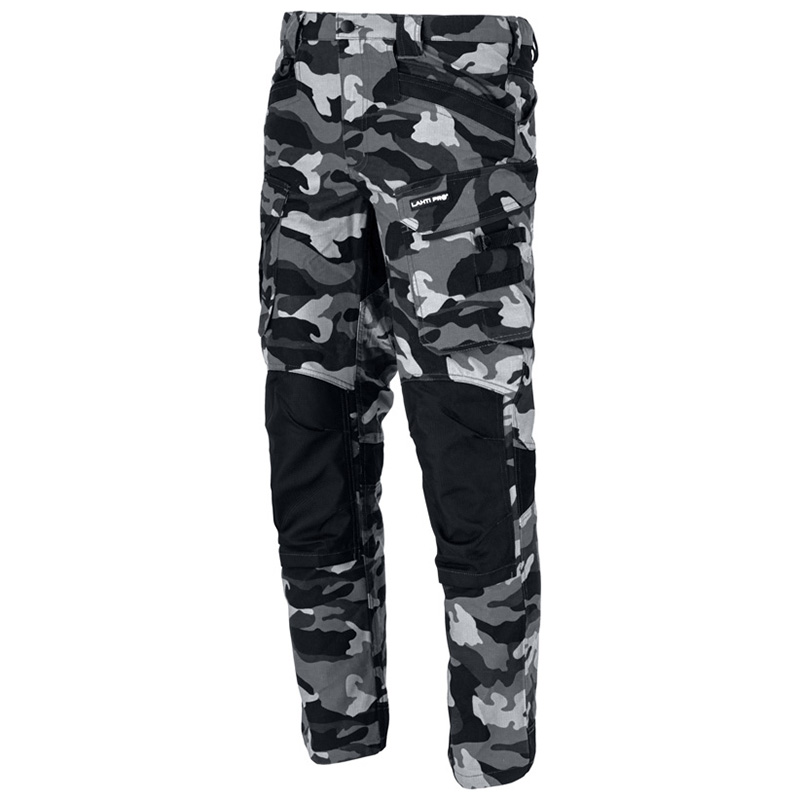 • Țesătură Ripstop, deosebit de durabilă și rezistentă. 12 buzunare, din care 1 cu închidere prin fermoar. Buzunar pentru telefonul mobil, buzunar pentru cuțit. Elemente reflectorizante. Cusături duble, consolidarea suplimentară a cusăturii în pas. Talie ajustabilă cu elastic. Inel fixare cheie. Găici pentru curea. Buzunare pentru genunchiere întărite cu material “Dobby Oxford” rezistent la uzură. Design modern, „slim fit”. Model dotat cu port ecuson.