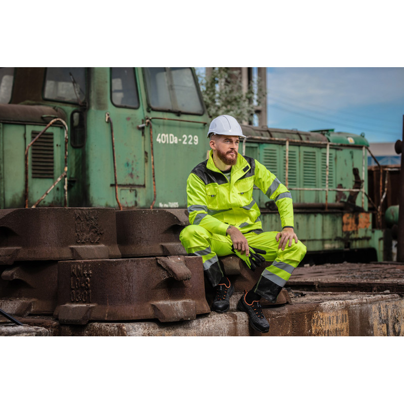 • Benzi reflectorizante, în conformitate cu standardul EN ISO 20471 (normă pentru îmbrăcăminte cu vizibilitate ridicată). Grad ridicat de vizibilitate - clasa 2. Cusături duble. 9 buzunare, din care 6 cu închidere prin arici. Buzunare pentru genunchiere. Buzunare întărite cu material (poliester 600D) rezistent la uzură. Talie reglabilă. Model dotat cu port ecuson.