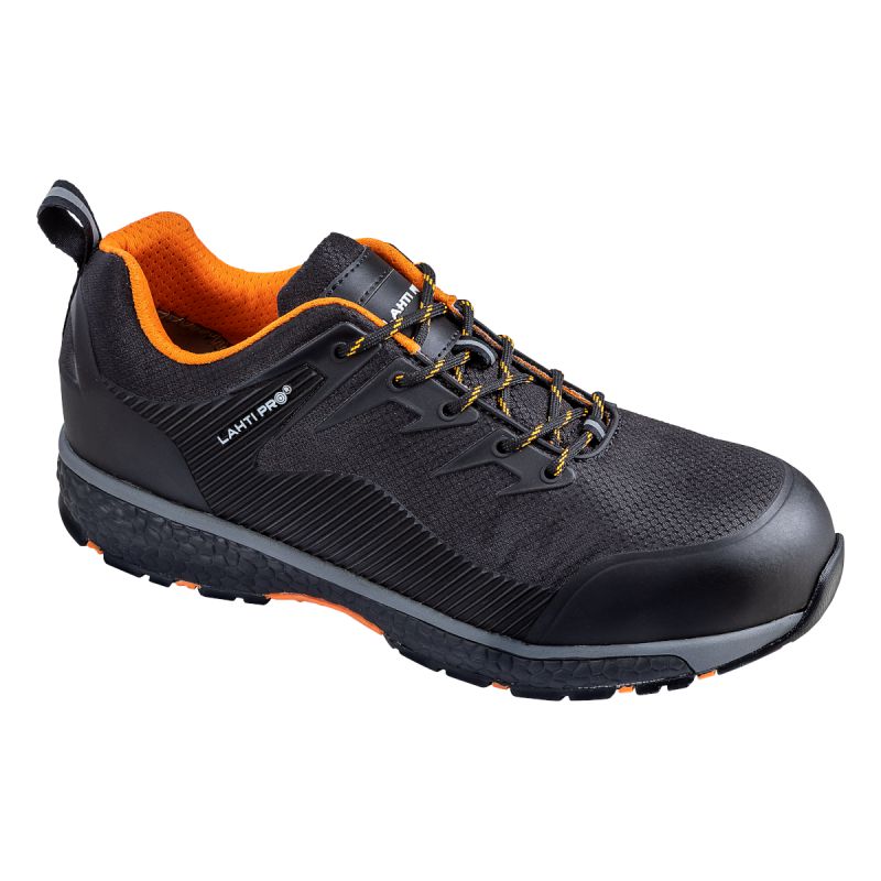 • Bombeu metalic. Inserție antiperforație din polimer, proprietăți anti-electrostatice, absorbție de energie în partea călcâiului, componente reflectorizante.