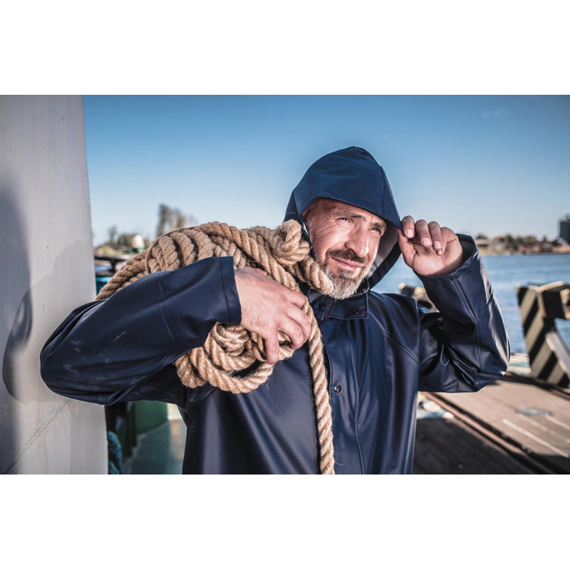 • Material cu o greutate redusă (100% poliuretan) ce asigură un confort sporit și o rezistență ridicată la uzură. Orificii de ventilație pentru a asigura o aerisire sporită. Glugă impermeabilă, ajustabilă și încorporată în guler cu închidere prin fermoar. Mâneci cu manșete interioare elastice. Fermoar acoperit cu o fâșie suplimentară cu capse pentru închidere. 2 buzunare exterioare.