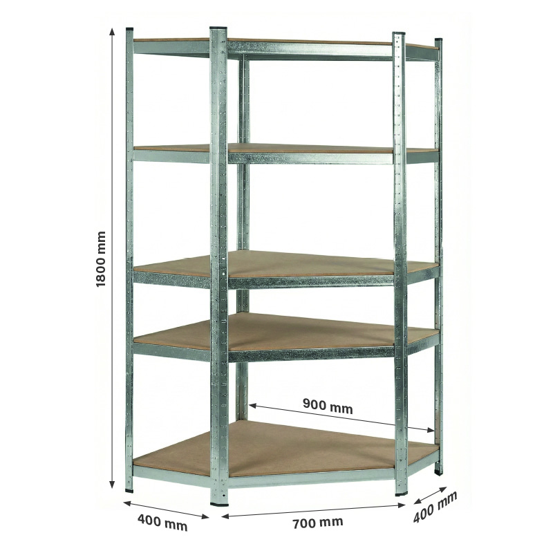 • Suprafața zincată protejează împotriva coroziunii, iar cele cinci rafturi solide din MDF și capacitatea de încărcare de 175 kg fiecare asigură stabilitate și o gamă largă de utilizări. Este un element ideal de completare pentru seturile mai mari de rafturi metalice.