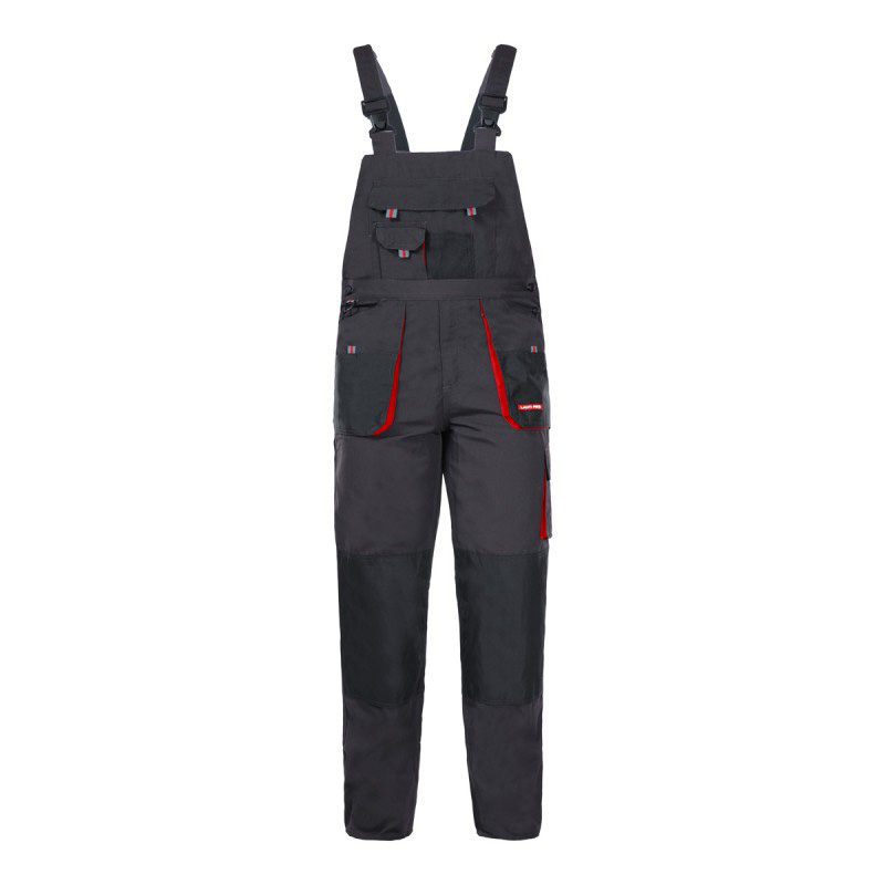 Porţiuni întărite la îmbinarea bretelelor, pe buzunare și genunchi, dintr-un material rezistent la uzură (poliester 600D).