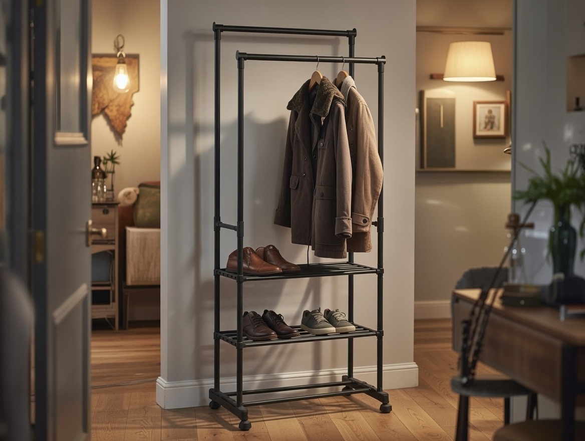 suport haine dublu cu poli?e - 78.5x41.5x165cm / 15kg