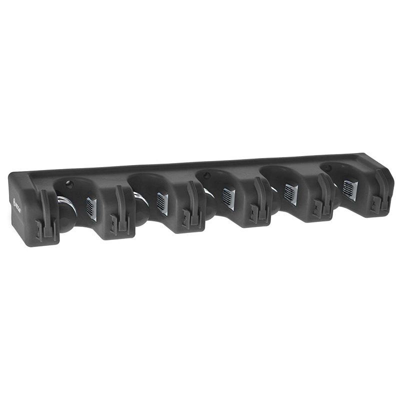 • Suport de perete din material PP pentru unelte de grădină și uz casnic, echipat cu 5 suporturi potrivite pentru mânere cu un diametru cuprins între 18-32 mm și 6 cârlige. Setul de montaj este inclus.