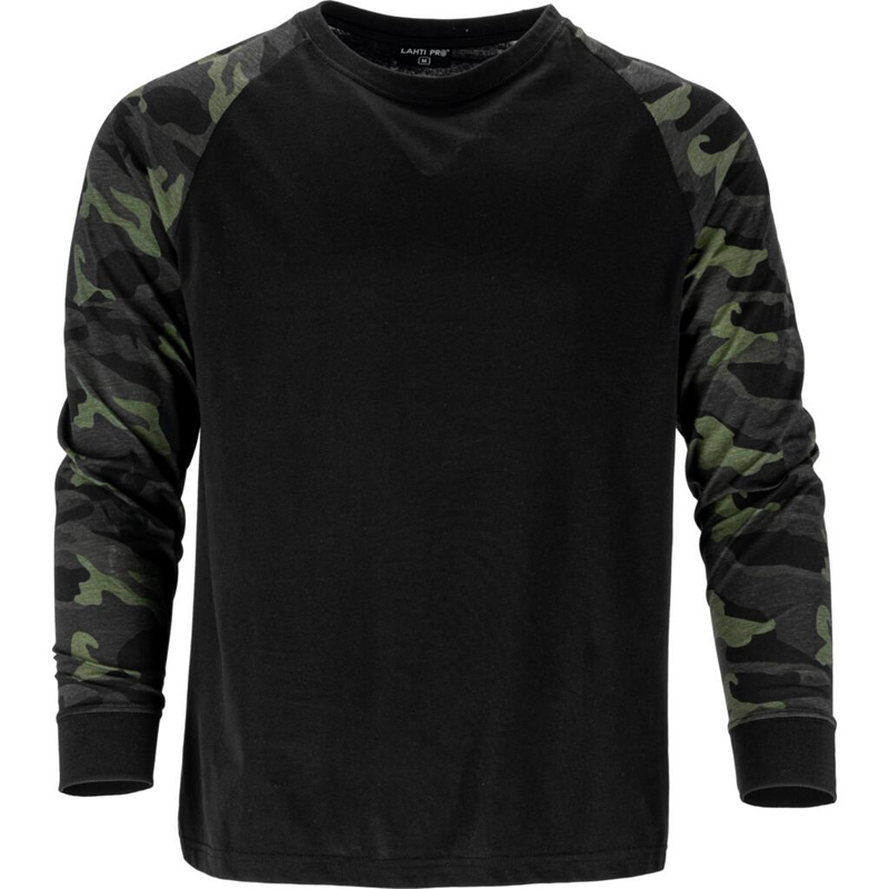 tricou bumbac cu maneca lunga / negru-camuflaj - s